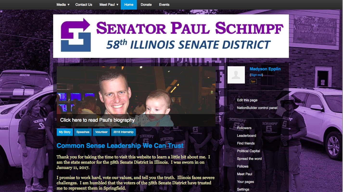 When I began my work with Senator Schimpf, he asked me to give his campaign website a re-vamp. The new site is brighter, more welcoming, and maintains a professional look. All edits were made using html coding through Nation Builder.